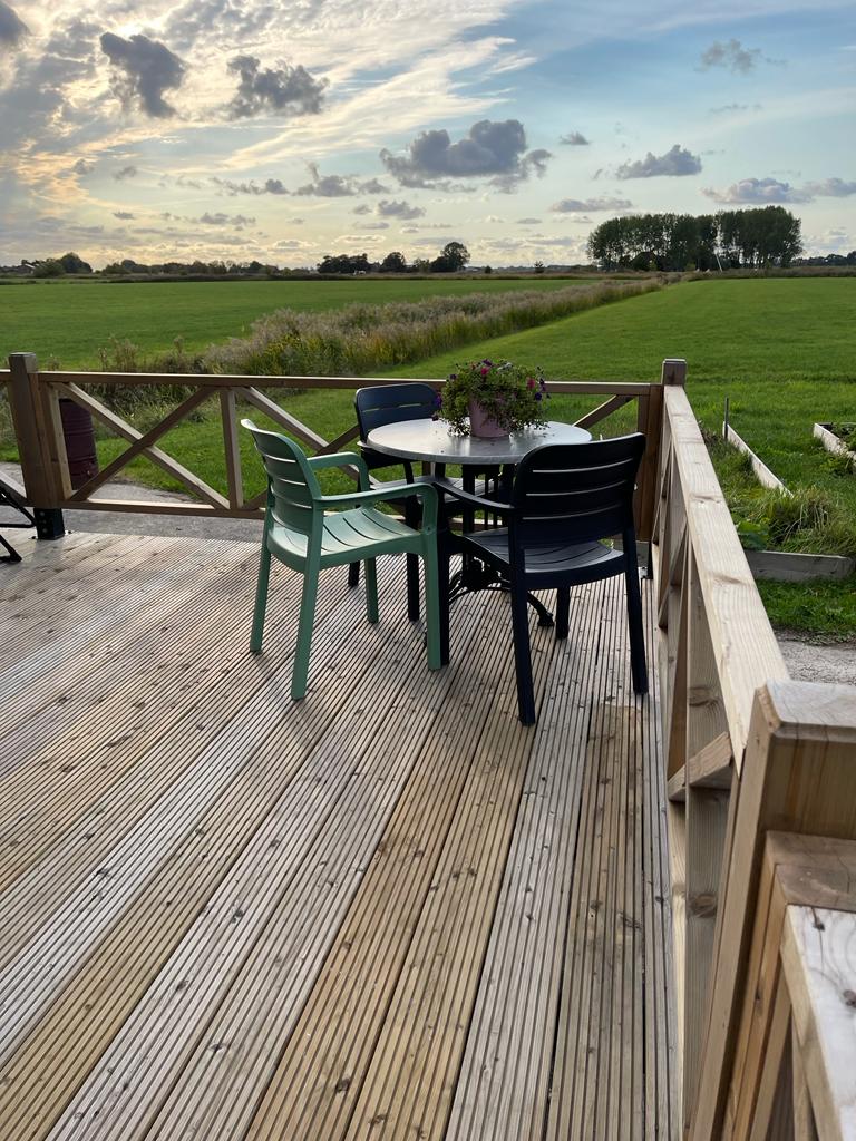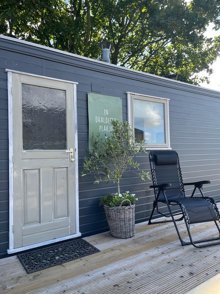 In Daaldersk plakje, Wat zegt dat over de plek waar ons comfortabele chalet staat. Met geen woorden te beschrijven, de ruimte rust en het prachtige uitzicht over de weilanden, het van Harinxmakanaal, met in de verte de Kerktoren van Deinum, (Yn Deinum stiet in sipel op ‘e toer.)Bootjes die elke dag langsvaren, de fietsbrug die open en dicht gaat. Dit is Friesland met ruimte, natuur en cultuur. Maar ook genieten van de nabijheid van de stad Leeuwarden.